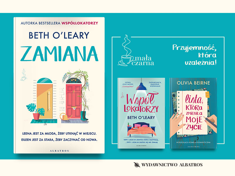 „Zamiana” to kolejna pozycja z serii „Mała Czarna” przygotowanej przez wydawnictwo Albatros. Te urocze, błyskotliwe i szalenie kobiece powieści doskonale sprawdzą się jako towarzyszki ciepłych dni, coraz chłodniejszych wieczorów czy bezsennych nocy, gdy mamy ochotę na niezobowiązującą i lekką lekturę. Historia spisana na kartkach najnowszej książki Beth O’Leary w jednej chwili potrafi rozbawić do łez, jednocześnie sprawiając, że zaledwie kilka stron dalej rzednie mina, a łzy, które pojawią się w oczach, nie mają już nic wspólnego z wesołością. To niezwykle urokliwa i ciepła opowieść, która pomimo smutnych wątków aż tętni od pozytywnych wibracji i optymizmu. Czyta się ją jednym tchem, a po każdym skończonym rozdziale ma się ochotę na więcej. I choć jest to raczej pozycja literacka z gatunku tych lekkich i przyjemnych, nie można zignorować jej niezwykle istotnego i podnoszącego na duchu przekazu: życie jest zbyt krótkie, by ciągle się wahać. Niezależnie od tego, ile masz lat – nigdy nie jest za późno, by odkurzyć swoje marzenia i po prostu zacząć je spełniać. Ale czy zmiana miejsca zamieszkania rzeczywiście wystarczy, by zmienić swoje życie? Przekonajcie się, sięgając po „Zamianę”.
