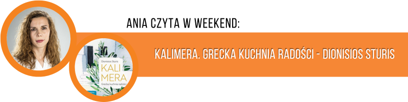 W ten weekend zamierzam się poświęcić nie tylko lekturze, ale i poczynaniom kulinarnym. Mam nadzieję, że pomoże mi w tym „Kalimera. Grecka kuchnia miłości” Dionisiosa Sturisa. Przeczytałam wszystkie reportaże tego autora i bardzo doceniam jego twórczość. Polsko-greckiego pisarza obserwuję również na Instagramie, na którym czasem dodaje on zdjęcia pysznych (tzn. nie próbowałam ich, ale jestem pewna, że pysznych!) potraw, które przyrządza. Liczę więc na to, że jego książka kulinarna będzie dla mnie niemałą inspiracją. Jeden z najprostszych przepisów (na deser) zawiera tylko trzy składniki – zacznę właśnie od niego i trzymam sama za siebie kciuki, że na tym się nie skończy. Że w weekend powstanie w moim polskim mieszkaniu grecka kulinarna uczta.