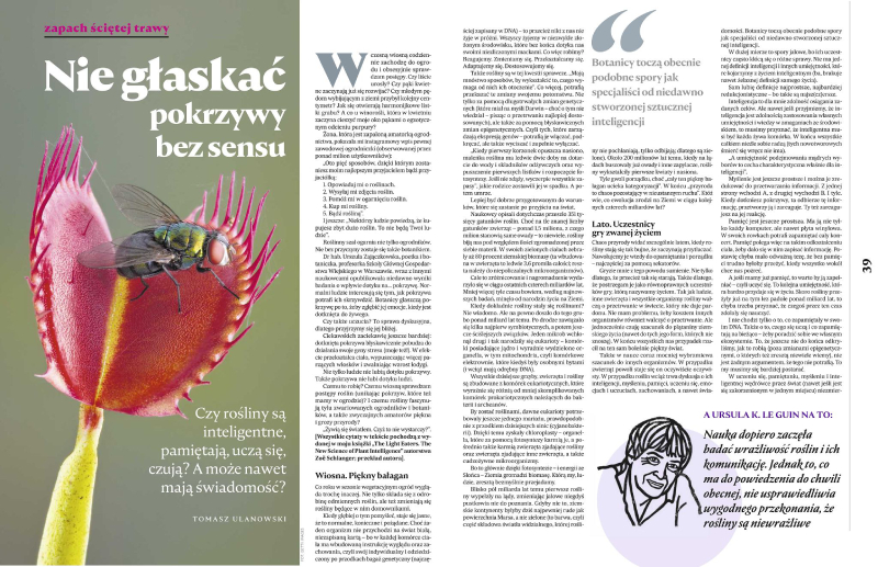 Czy rośliny są inteligentne, pamiętają, uczą się, czują? A może nawet mają świadomość? Dowiecie się z tekstu Tomasza Ulanowskiego.