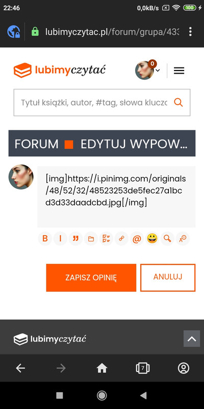 PS jak ludzie to robią, że wstawiają obrazki z poziomu strony LC? Czy może robią to za pomocą magicznej apki? Czy może tylko Lucy i @Lis Gracki umieją w obrazki, bo to wiedza tajemna?;)