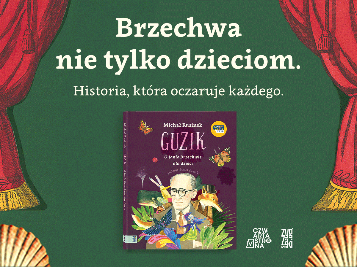 Kim był Jan Brzechwa, poeta, którego znają wszystkie dzieci? Michał Rusinek w książce „Guzik. O Janie Brzechwie dla dzieci” zabiera młodych czytelników w podróż przez życie autora „Kaczki dziwaczki”. Z humorem i lekkością opowiada o tym, jak Brzechwa pisał, marzył, błądził i… czasem się spóźniał. To opowieść o prawdziwym człowieku ukrytym za rymowanymi wersami.