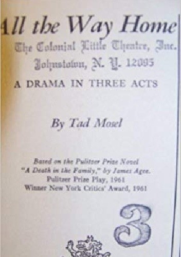 A play written by American playwright Tad Mosel, adapted from the 1957 James Agee novel, A Death in the Family. Both authors received the Pulitzer Prize for their separate works.