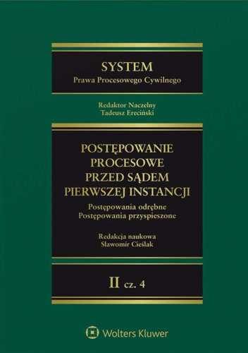 Prezentujemy Państwu kolejną publikację z tej serii, stanowiącą część 4 tomu II „POSTĘPOWANIE PROCESOWE PRZED SĄDEM PIERWSZEJ INSTANCJI”. W książce pod redakcją naukową prof. dra hab. Sławomira Cieślaka omówiono postępowania odrębne w procesie cywilnym, zaliczane do tzw. postępowań przyspieszonych w procesie cywilnym. Europejskie postępowania w sporach transgranicznych, jakimi są europejskie postępowanie nakazowe oraz europejskie postępowanie w sprawie drobnych roszczeń, zostaną zamieszczone w tomie VII Systemu poświęconym międzynarodowemu i europejskiemu prawu procesowemu.