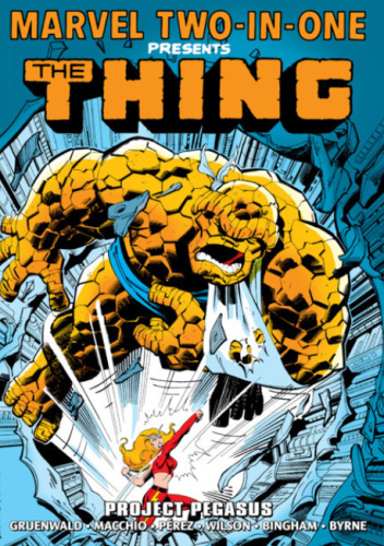 Two-fisted fun doesn’t come any finer than Marvel Two-In-One — and the beloved “Project PEGASUS” saga stands as one of the series’ greatest triumphs! When the Thing visits a top-secret S.H.I.E.L.D. energy installation, he’s not prepared for the gauntlet ahead. Teaming up with Quasar and Giant-Man, he clashes with Thundra, battles a time-lost Deathlok and witnesses the startling transformation of Wundarr. Then the Thing unites with FF teammate Johnny Storm and witnesses “The Coming of Her” on Counter-Earth! The action only intensifies with the power of Maelstrom and the shocking return of the Serpent Crown. And it’s the story you never thought you’d see: The Thing joins forces with the Yancy Street Gang! Plus: Cosmic Marvel gets its due in Thing team-ups with Moondragon, Starhawk, Adam Warlock and the Guardians of the Galaxy!